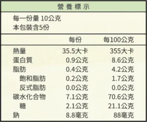 保存方式:請放置陰涼乾燥處,避免陽光照射開封後盡速食用完畢,避免受潮。